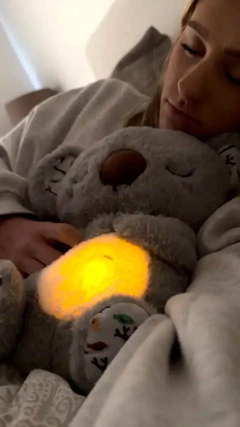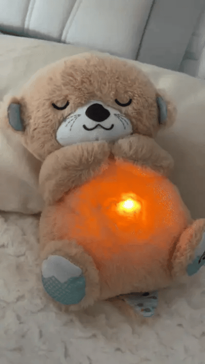 The toy simulates rhythmic breathing by gently rising and falling, accompanied by soft lighting and calming sounds. This combination creates a serene environment, aiding in relaxation and sleep.