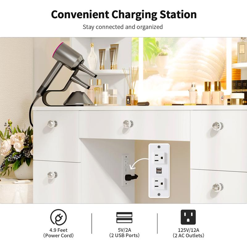 Features 2 standard outlets and 2 USB ports to power your hair dryer, curling iron, beauty tools, or phone. Keep everything charged and within reach while you get ready.
