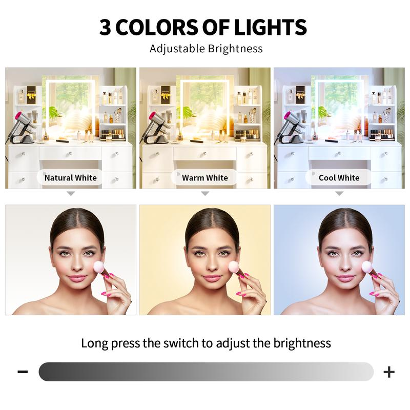 Yes, the mirror features multiple light settings (warm, cool, and natural) for different makeup needs.
