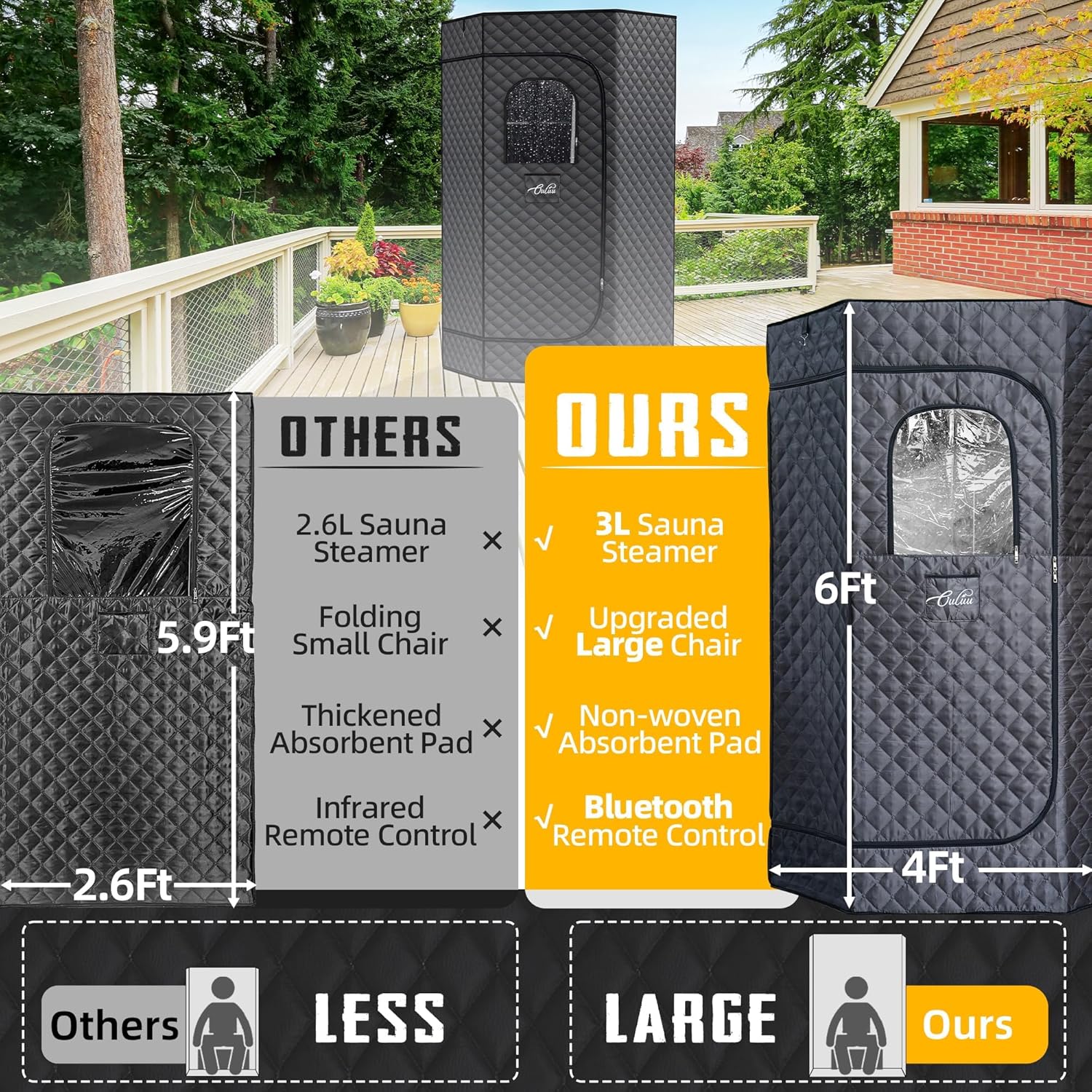 ✔️ Upgraded Sauna Chair – Comes with a plush, enlarged moon chair designed for superior comfort and support, so you can fully sink in and unwind during your session.