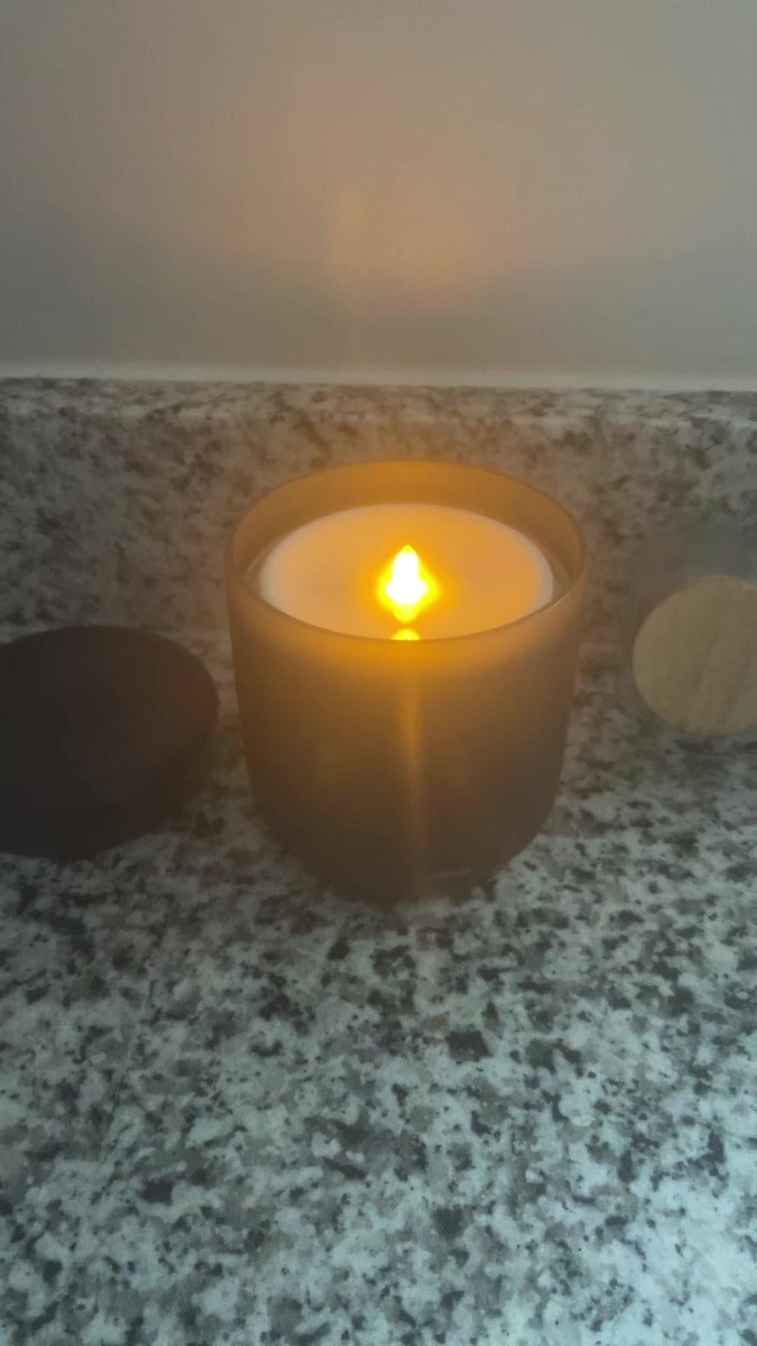 Soothe your senses with this flameless candle diffuser. It uses smart nebulizing tech—no water needed! Enjoy the warm glow of a candle without the flame.