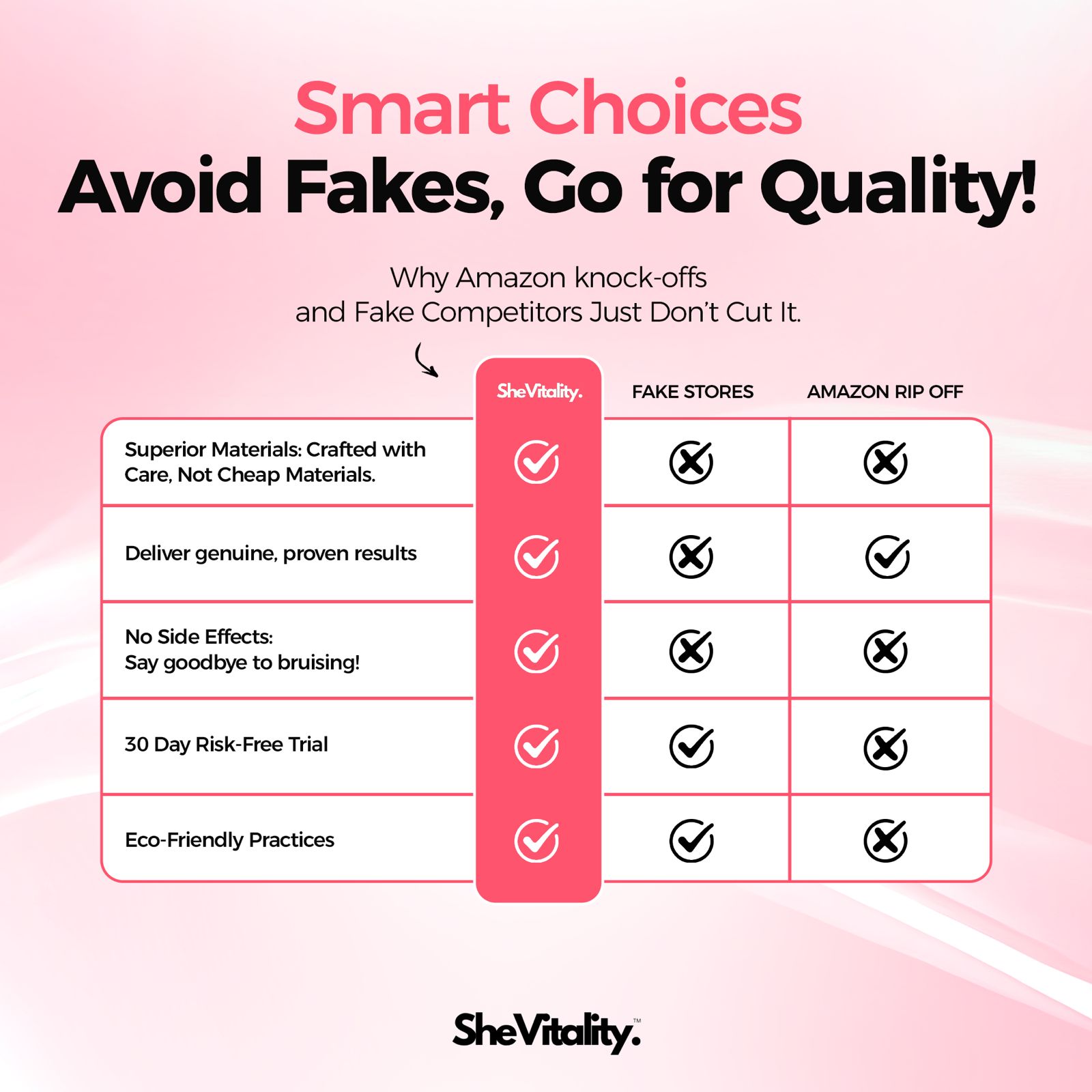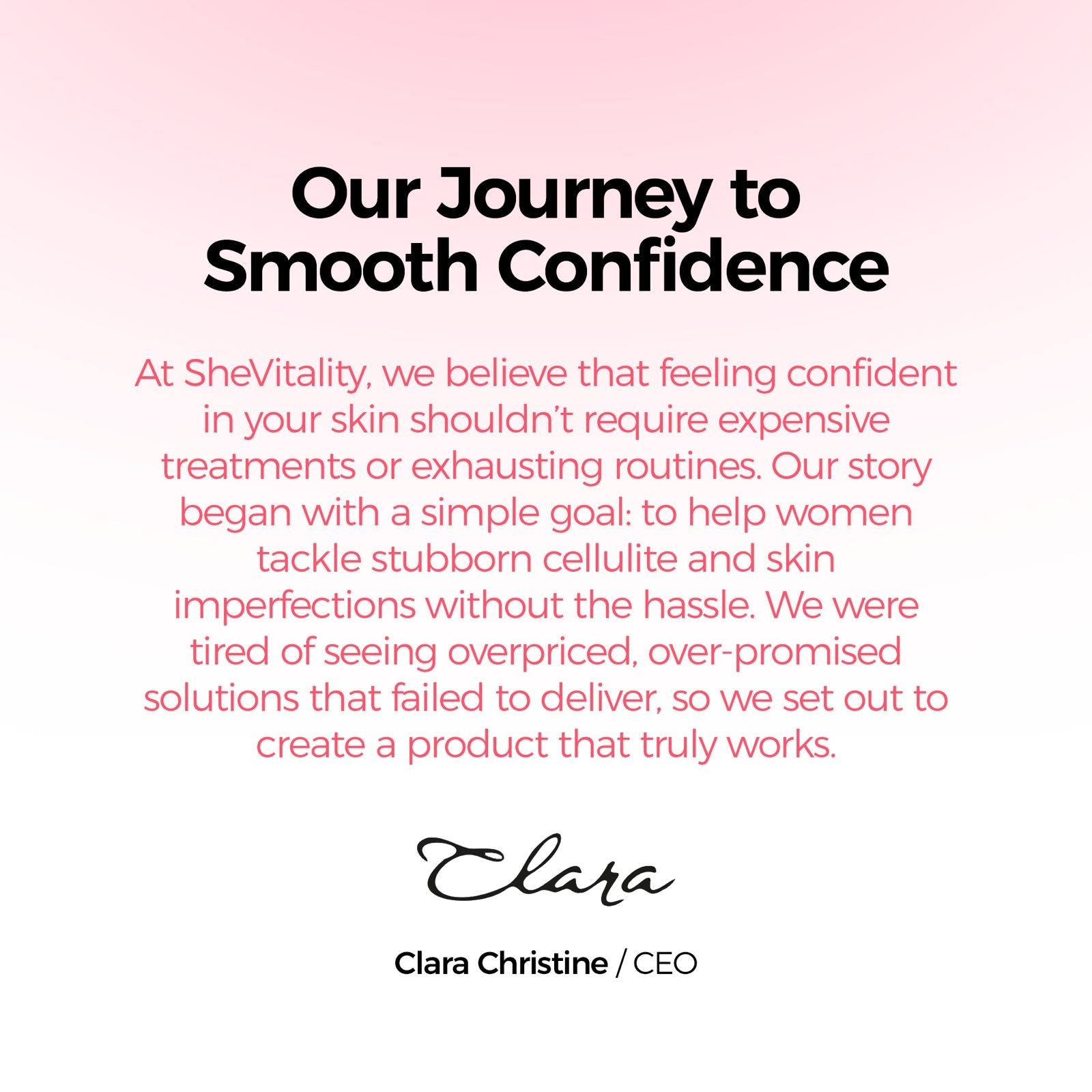 How It Works: Unlike creams & treatments that mask the problem, SheVitality attacks cellulite where it begins - in the structural layers beneath your skin WITHOUT the invasive surgery